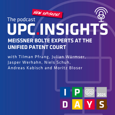 UPC.Insights ist der Podcast von Meissner Bolte. Jeden ersten Donnerstag im Monat führen wir Euch durch spannende Episoden, in denen wir tief in die Welt des Patentrechts eintauchen. Unsere Experten und wechselnden Gäste bringen Euch topaktuelle Informationen, Hintergrundwissen und fesselnde Diskussionen rund um den Unified Patent Court. Ab jetzt auf Englisch!